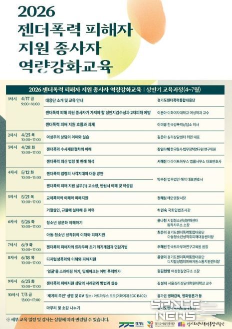 스페이스뉴스 스페이스뉴스 기자 | 경기도와 경기도젠더폭력통합대응단이 17일 도내 젠더폭력 피해 지원 현장 종사자들의 전문성 향상을 위한 ‘2026 역량강화 교육’ 상반기 과정을 시작하며 현장 대응력 강화에 나섰다.