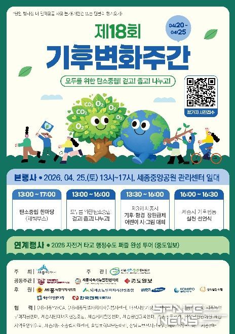 스페이스뉴스 스페이스뉴스 기자 | 세종특별자치시가 20일부터 25일까지 6일간 중앙공원 일대에서 ‘제18회 기후변화주간’ 행사를 개최한다.
