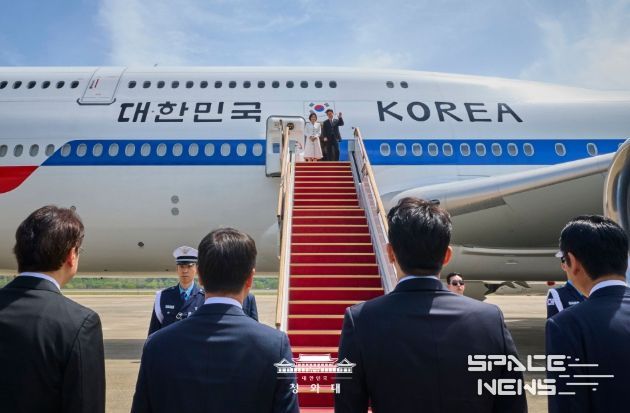 스페이스뉴스 스페이스뉴스 기자 | 이재명 대통령과 김혜경 여사는 5박 6일 일정의 인도 및 베트남 국빈 방문을 위해 19일 경기 성남 서울공항에서 대통령 전용기(공군 1호기)를 이용해 출국했다.