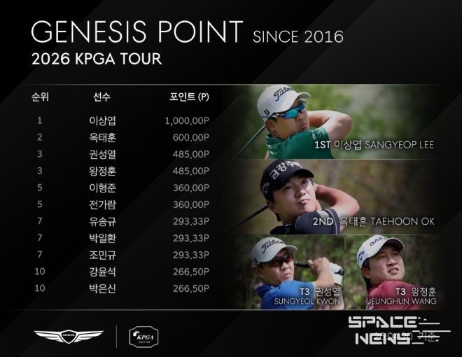 권성열(40)과 왕정훈(31.DAEJIN)이 485포인트로 제네시스 포인트 3위, 이형준(34.웰컴저축은행), 전가람(31.LS)이 360포인트로 제네시스 포인트 5위에 이름을 올렸다.
