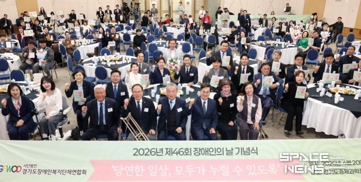 이날 기념식은 ㈔경기도장애인복지단체연합회(회장 이영재)가 주최·주관했으며, 장애인 가족과 단체 관계자 등 200여 명이 참석한 가운데 장애인 인권헌장, 축사, 공연 등으로 진행됐다.
