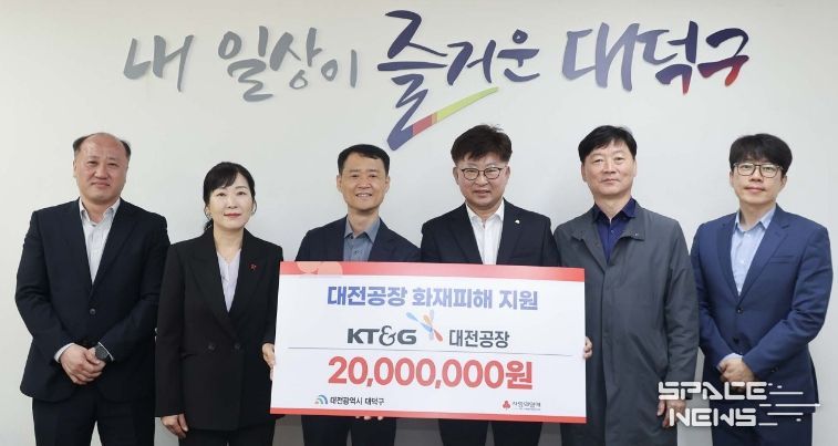 스페이스뉴스 스페이스뉴스 기자 | 대전 대덕구는 21일 문평동 공장화재 피해 주민 지원을 위해 KT&G 대전공장(공장장 장재홍)으로부터 성금 2000만원을 기탁받았다고 밝혔다.