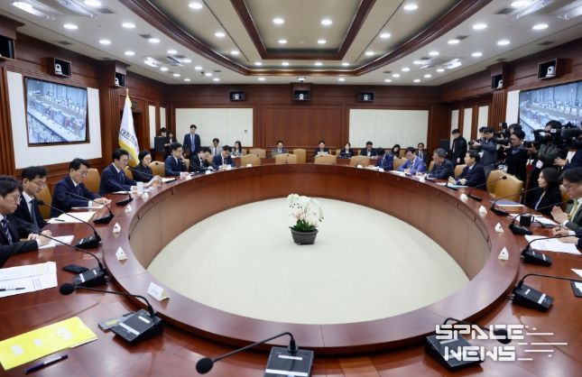 스페이스뉴스 스페이스뉴스 기자 | 김민석 국무총리는 4월 22일, 정부서울청사에서 재경부 등 관계부처 장관이 참석한 가운데 ‘제9차 비상경제본부’ 회의를 주재하고, ▴해외상황 관리 ▴거시경제·물가 ▴에너지 수급 ▴금융안정 ▴민생복지 반별 대응상황을 점검했다.