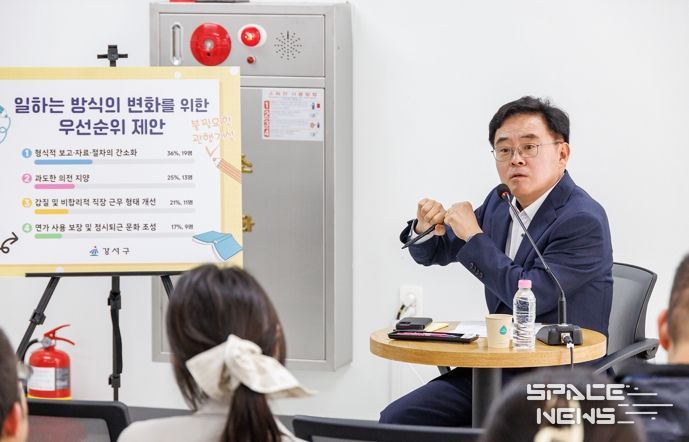 스페이스뉴스 스페이스뉴스 기자 | 진교훈 강서구청장이 22일 수요일 주요 계약‧인허가 등 부패 취약분야 부서 직원들과 청렴 소통 간담회를 가졌다.