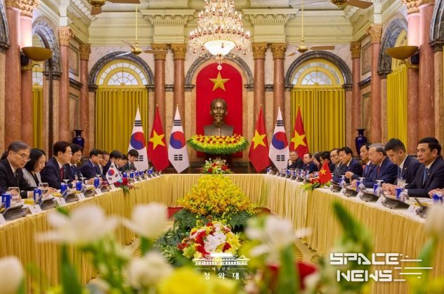 스페이스뉴스 스페이스뉴스 기자 | 베트남을 국빈 방문 중인 이재명 대통령은 22일(현지시간) 오후 베트남 국가주석궁에서 또 럼 당서기장 겸 국가주석과 정상회담을 갖고, 양국 간 포괄적 전략 동반자 관계 발전 방안과 지역·국제 정세 등에 대해 심도 있게 논의했다고 이규연 청와대 홍보소통수석이 서면 브리핑했다.