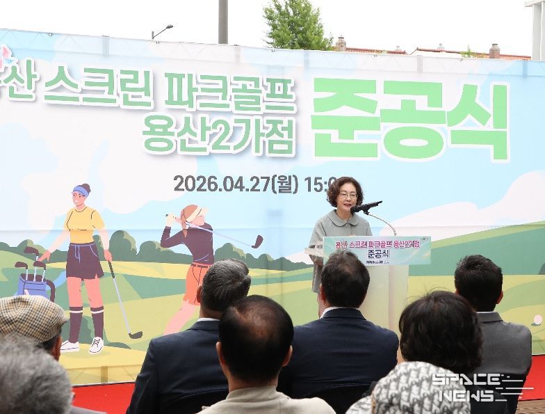 스페이스뉴스 스페이스뉴스 기자 | 서울 용산구는 27일 ‘용산 스크린 파크골프 용산2가점’ 준공 기념행사를 열었다고 밝혔다. 이날 행사는 축사, 테이프 절단식, 시타 순으로 진행됐다.