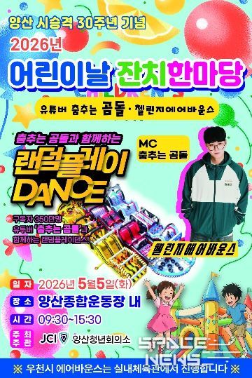 스페이스뉴스 스페이스뉴스 기자 | 양산시는 5월 5일 9시 30분부터 15시 30분까지 양산종합운동장 주경기장에서 '2026년 어린이날 잔치 한마당' 행사가 개최된다고 밝혔다.