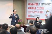 스페이스뉴스 스페이스뉴스 기자 | 이현재 하남시장은 20일 감일동 행정복지센터에서 열린 ‘주민과의 대화’에서 “방아다리길 연결도로 개통과 연계한 버스 노선 개편 및 생활 SOC 확충을 통해 감일신도시 주민들의 정주 여건을 개선하겠다”라고 밝혔다. 방아다리길 연결도로는 하남시 감일동과 서울시 송파구 방이동을 잇는 구간으로, 오는 2026년 6월 최종 준공될 예정이다. 이현재 시장은 “도로 개통에 맞춰 올림픽공원 방향으로 버스 노선을 집중 조정함으로써 주민들의 교통 편의를 높이겠다”라고 설명했다. 아울러 학생들의 안전한 보행 환경 조성을 위한 교량 신설 사업도 속도를 낸다. 신우초등학교 앞 인도교 확장 공사는 학생들의 안전을 고려해 오는 4월 준공할 예정이며, 10단지에서 8단지 상가를 연결하는 벌말천 인도교는 1월 중 주민설명회를 거쳐 6월 준공 및 개방을 목표로 하고 있다. 이 시장은 지역 문화 인프라 구축의 핵심인 감일 박물관 건립 상황도 공유했다. 감일지구 출토 유물을 전시할 박물관은 이달 중 건축 공사에 착공하며, 총 152억 원의 사업비를 투입해 2027년 하반기 준공될 예정이다. 다만, 감일종합복지타운