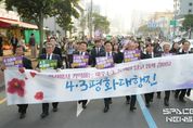 스페이스뉴스 스페이스뉴스 기자 | 제주특별자치도는 제78주년 4·3희생자 추념식을 하루 앞둔 2일, 제주 도심이 세대와 지역을 아우르는 거대한 평화의 물결로 뒤덮였다. 4·3유족과 도민을 비롯해 전국 대학생, 청소년, 시민단체가 세 갈래 출발 지점에서 발을 떼 하나로 모이는 ‘4·3 평화 대행진’이 펼쳐졌다. 이날 행진은 ‘기억의 계승’과 ‘과거사 연대’라는 4·3의 핵심 가치를 온몸으로 구현한 자리였다. 4·3 평화 대행진은 관덕정, 제주민속자연사박물관, 제주시청 앞 등 세 곳에서 동시에 시작됐다. 관덕정에서는 전국 대학생들이 4·3 평화 선언과 문화공연으로 행진의 서막을 알렸으며, 민속자연사박물관에서는 청소년들이 체험 프로그램과 타악 퍼포먼스를 통해 4·3의 가치를 공유하며 첫걸음을 내딛었다. 제주시청 정문 앞에서는 유족과 시민단체가 참여한 ‘4·3특별법 개정 촉구 결의대회’가 열려 역사 왜곡 처벌 규정 마련의 시급성을 전국에 알렸다. 오후 5시경 세 행진단이 한자리에 합류한 뒤 제주문예회관까지 공동 행진을 이어갔다. 합류 지점에서는 희생자 1만 5,218명을 상징하는 대형 현수막