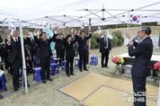 스페이스뉴스 스페이스뉴스 기자 | 지난 4월 1일, 홍성군 금마면 죽림리 철마산 3·1공원 기념비 앞에서 기미독립운동을 펼쳤던 184명의 독립유공자 선열을 추모하는 제향이 금마철마산3·1운동유족회 주관, 금마면·충남서부보훈지청 후원으로 거행됐다. 이날 행사는 홍성군수를 비롯한 여러 기관·단체장과 독립유공자 유가족, 주민 등 150여 명이 참석한 가운데 ▲독립애국지사 추모제향 ▲추모사 기념사 ▲독립선언서 낭독 및 공연 ▲3·1절 노래 제창 및 만세삼창 ▲봉화대 만세 재현 걷기 순으로 경건한 분위기 속에서 진행됐다. 유족회는 1984년 유족, 재경 인사 등의 성금으로 철마산에 기미독립운동기념비를 세우고 공원을 조성했다. 이곳에서 선열들의 고귀한 넋을 위로하는 추모제향을 치러 애국정신 계승에 힘쓰고 있으며, 금마면에서 최초의 독립만세운동이 1919년 4월 1일 시작된 것을 기념하여 매년 4월 1일에 행사를 진행하고 있다고 전했다. 행사에 참여한 한 유족은 “매년 잊지 않고 우리 조상들의 희생을 기려주는 홍성군과 주민들에게 감사하다”며, “금마면에서 시작된 독립의 불꽃이 후손들의 가슴 속에도 영원히 꺼지지 않는 자부심