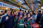 스페이스뉴스 스페이스뉴스 기자 | 이재명 대통령은 30일 오후 제주 타운홀미팅 '제주의 마음을 듣다' 종료 후, 김혜경 여사와 함께 1박 2일 제주 일정의 마지막 일정으로 동문시장을 방문했다. 동문시장은 제주시 도심에 위치한 대표적인 전통시장으로, 대통령 부부의 방문 소식에 상인들과 방문객들은 놀라움 속에 환호와 박수로 이들을 맞이했다. 입구에 서 있던 한 외국인 관광객은 어디서 왔냐는 이 대통령의 질문에 “오스트레일리아”고 답하기도 했다. 이 대통령 부부는 셀카촬영과 악수를 이어가며 과일모찌 가게에 들러 온누리상품권으로 한라봉모찌와 딸기모찌를 구입해 즉석에서 강유정 대변인, 하정우 수석 등과 함께 시식했다. 이동 내내 이어지는 셀카요청에도 이 대통령 부부는 반갑게 응했다. 그러자 시장을 찾은 많은 도민들은 이동 중인 이 대통령 부부를 향해 "사랑해요", "와 대박", "화이팅"을 외치는 소리로 화답했다. 이 대통령은 특히 어린이들의 사진 요청에 적극적으로 답했다. "애기 있어요"라는 소리가 들리면 발걸음을 멈추고 아이들과 하이파이브를 하거나 반갑게 셀카를 찍었다. 또한 강