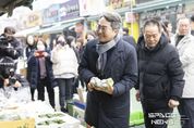 스페이스뉴스 스페이스뉴스 기자 | 김동연 경기도지사가 경기도 지원으로 폭설 피해 복구 작업이 진행 중인 의왕 도깨비시장을 찾아 상인들을 격려했다. 2024년 11월 의왕 도깨비시장이 폭설 피해를 당한 후 세 번째 방문이다. 15일 27번째 민생경제 현장투어(달달버스-달려간 곳마다 달라집니다)차 의왕시를 찾은 김동연 지사는 도깨비시장 피해복구 공사 진행 상황과 설을 앞둔 시장 물가 동향 등을 점검하며 시장 상인들과 대화를 나눴다. 김동연 지사는 박용술 도깨비시장 상인회장을 만난 자리에서 “잘 계셨냐? 재작년 폭설 오고 계속 눈에 밟혀서 어떠신가 해서..”라며 안부를 전한 후 “아무 걱정 안 하시게 (설치 구조물을) 만들 테니까 안심하시라. 공사를 빨리하려고 했는데 설 대목 때문에 늦췄다. 설 대목 장사 잘하시고 끝나면 신속하게 진행하겠다”고 상인들을 안심시켰다. 이에 대해 박용술 회장은 “(공사)진전이 엄청 빨리 되고 있다”면서 “작년에 사업 지원을 받아 주차장 하자 부분도 싹 다시 수리를 받았다. 아주 잘 쓰고 있다. 하나하나 진짜 감사드린다”고 말했다. 구윤자 상인부회장도 “자주 와주셔서 이제 눈