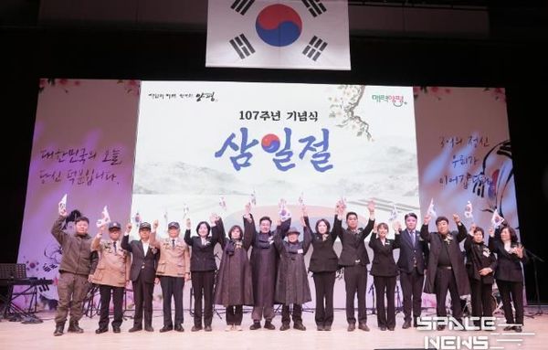 스페이스뉴스 스페이스뉴스 기자 | 임실군은 제107주년 3.1절을 맞아 1일 오전 10시 임실읍 3.1동산에서 심민 군수, 양주영 부의장, 유효선 교육장과 독립유공자 등 보훈단체 회원을 비롯하여 학생, 군민, 군인 등 150여명이 참석한 가운데 3.1절 기념식을 개최했다.
