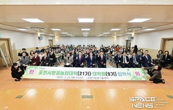 스페이스뉴스 스페이스뉴스 기자 | 포천시는 지난 24일 포천시농업기술센터 대강당에서 신입생과 내빈 등 100여 명이 참석한 가운데 ‘2026학년도 포천시환경농업대학(22기) 및 대학원(9기) 입학식’을 개최했다.