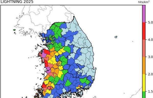 스페이스뉴스 스페이스뉴스 기자 | 기상청은 2025년 우리나라에서 관측된 낙뢰 정보를 담은 ‘2025 낙뢰연보’를 발간했다. 연보는 기상청 21개 낙뢰 관측망으로 관측한 자료를 통해 분석한 △월별, 광역시·도별, 시군구별 낙뢰 횟수 △단위 면적당(㎢) 횟수 △낙뢰 공간 분포 △주요 5대 낙뢰 사례 등의 내용을 담고 있다.