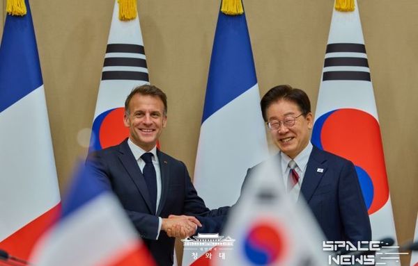 스페이스뉴스 스페이스뉴스 기자 | 산업통상부는 에마뉘엘 마크롱(Emmanuel Macron) 프랑스 대통령의 국빈방한을 계기로 개최된 한-프랑스 정상회담(4.3일 오전)에서 양국 정상 임석 하에 핵심광물과 반도체 분야에 대한 두 건의 협력의향서를 체결했다.