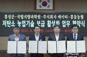 스페이스뉴스 스페이스뉴스 기자 | 홍성군은 29일, 국립식량과학원, KT(케이티), 홍동농협과 함께 저탄소 농업기술 보급 활성화를 위한 4자간 업무협약(MOU)을 체결했다고 밝혔다. 군청 회의실에서 열린 협약식에는 이용록 홍성군수, 주정산 홍동농협 조합장, 국립식량과학원 곽도연 원장, KT 충남·충북고객본부 송영태 본부장 등 19명이 참석했다. 이번 협약에 따라 홍성군은 국립식량과학원이 개발한 저탄소 농업기술의 보급과 현장 지도를 담당하고, KT는 계측 데이터의 안정적 운영을 위한 통신 인프라를 지원하며, 홍동농협은 작목반 교육과 생산 관리 등 현장 적용에 중점을 두게 된다. 현재 저탄소 농산물 인증을 위해 필요한 ‘논물 관리’의 증빙은 농민이 수위를 직접 촬영해 업로드해야 해 고령농가의 참여에 어려움이 있었고, 증빙의 정확성도 낮다는 지적이 있었다. 이에 홍성군은 지난 6월 국립식량과학원·홍동농협과 협력해 홍동면 17개 대표 필지에 논물 계측기를 설치하고 현장 실증을 추진해왔으며, 이번 협약은 이러한 노력을 기반으로 저탄소 농업기술의 지속적 확산을 위해 마련됐다. 이용록 홍성군수는 “
