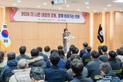 스페이스뉴스 스페이스뉴스 기자 | 하남시는 1월 2일 오전 시청 별관 대강당에서 공직자와 출자·출연기관 임직원 등 300여 명이 참석한 가운데 ‘2026년 시무식’을 개최하고 새해 업무에 본격적으로 돌입했다. 이날 시무식은 개식 및 국민의례를 시작으로 신년사, 새해 공동다짐 낭독, 신년인사회 순으로 진행됐다. 시는 이번 시무식을 통해 2026년 시정 운영 방향을 전 직원과 공유하고, 시민 중심의 행정 서비스 제공과 자족도시 기반 구축을 위한 의지를 다졌다. 이현재 하남시장은 이날 신년사를 통해 먼저 “지난 한 해 동안 각자의 자리에서 묵묵히 소임을 다해준 공직자 여러분의 노고에 감사드린다”고 전했다. 이어 하남시가 직면한 현실을 냉정히 진단하며 시정의 변화를 주문했다. 이현재 시장은 “최근 인구는 급증했으나 1인당 지역내총생산(GRDP)은 여전히 낮은 수준에 머물러 있다”라며 “일자리와 산업 기반이 없는 도시는 한계가 있는 만큼, 전 공직자가 일치단결해 자족경제 도시로의 도약을 이끌어내야 한다”고 역설했다. 또한 “올해는 하남시가 자족경제 도시로 전환할 수 있는 중요한 골든타임인 만큼, 모든 행정