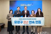 스페이스뉴스 스페이스뉴스 기자 | 대전 유성구가 ‘2025 대한민국 독서경영 우수 직장’ 인증을 받아 대전 자치구 중 최초로 2년 연속 인증을 획득했다고 6일 밝혔다. 독서경영 우수 직장 인증제는 문화체육관광부와 한국출판문화산업진흥원 주관으로, 직원의 독서 활동을 장려하고 독서를 통한 조직 문화 개선을 실천하는 기관·기업을 대상으로 심사를 통해 인증을 부여한다. 유성구는 ‘독서를 통한 지식 창출과 사회적 소통’이라는 독서경영 비전 아래 2023년부터 다양한 프로그램을 운영하고 있다. 올해는 직원이 추천 도서를 행정시스템 게시판에 소개하고 다음 추천자를 지목하는 독서 릴레이 캠페인(내 인생 한 권의 책)을 진행해 총 23권의 도서가 추천됐다. 또한, 바쁜 업무 환경으로 도서관을 방문하기 어려운 직원을 위해 8개 공공도서관의 책을 사무실로 배송하는 ‘북켓배송’ 서비스를 운영했으며, 352명의 직원이 658권을 전달받았다. 이와 함께 직원휴게실 내 작은도서관을 운영해 직원 기부로 도서를 확충하고, 자율적인 독서 문화를 조성하기 위한 공간으로 활용하고 있다. 정용래 유성구청장은 “