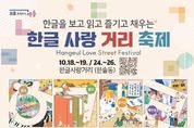 스페이스뉴스 스페이스뉴스 기자 | 세종시문화관광재단은 오는 10월 18일부터 26일까지 한솔동 한글사랑거리(첫마을 정류장 인근) 일원에서 ‘한글 사랑거리 축제’를 개최한다. 이번 축제는 한글문화도시 세종의 상징공간인 ‘한글 사랑거리’를 중심으로 시민이 한글을 보고, 읽고, 즐기며 한글문화의 가치를 체험하는 문화축제로 마련됐다. 특히 한국영상대학교, 한솔동 상인회 등 지역기관이 함께 참여해 한글문화를 지역상권과 연결하고 세종만의 한글문화 네트워크를 확장할 전망이다. 행사는 10월 18~19일과 24~26일, 총 5일간 진행되며, ‘읽고·보고·즐기고·채우는’ 네 가지 주제를 중심으로 전시·공연·체험·먹거리가 어우러진 다채로운 프로그램으로 시민들을 맞이한다. 먼저 한글을 ‘읽고’ 즐길 수 있는 테마에서는, 한글 이야기 공모전 선정작 5편과 삽화·캐릭터 디지털 감상, 거리에서 펼쳐지는 자율 독서로 한글의 즐거움을 느껴볼 수 있다. 거리 곳곳에서는 시민들이 ‘보고’ 즐길 수 있는 다양한 공연이 이어진다. 18일에는 한글 컬러마임 퍼포먼스(13시), 세종거리예술가 공연(17시)이 펼쳐지고 19일·25일·26일