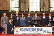 스페이스뉴스 스페이스뉴스 기자 | 전주시와 호주의 대표도시인 멜버른시가 상호 발전을 응원하는 동반자가 되기로 했다. 우범기 전주시장이 이끄는 전주시 대표단은 현지시간으로 지난 10일 호주 멜버른 시청을 방문해 케빈 로웨이 멜버른 시의원과 오진관 주 멜버른 대한민국 총영사, 마크 코크레인 멜버른 국제협력실 국장, 멜버른 지역 언론사 등이 참석한 가운데 양 도시간 교류를 더욱 발전시키기로 뜻을 모았다. 특히 양 도시는 이 자리에서 우호적 국제관계를 맺는 공동선언에 나섰다. 이날 서명한 협력 체결서에는 △문화예술교류 활성화 △문화산업 및 관광·도시디자인 협력 △지속가능한 문화경제 발전 △공공·민간협력 네트워크 구축 등의 내용이 담겨 있다. 전주시와의 국제교류를 약속한 멜버른시는 호주 빅토리아주 기초자치단체 중 핵심이 되는 도시로, 호주 내에서도 가장 살고 싶은 도시로 선정된 바 있다. 우 시장을 비롯한 전주시 대표단과 멜번시 관계자들은 우호 협력 체결 이후 문화예술과 관광, 스포츠, 경제, 도시디자인, 교육 등 다양한 분야의 교류 확대 방안을 논의하기도 했다. 전주시 대표단은