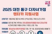 스페이스뉴스 스페이스뉴스 기자 | 대전 동구는 다자녀 가정의 여가활동 지원과 아이 키우기 좋은 환경 조성을 위해 ‘2025년 다자녀 가정 렌터카 지원사업’을 본격 추진, 이달 29일부터 참여자를 모집한다고 밝혔다. 이번 사업은 총 2천만 원의 고향사랑기금으로 추진되며, 신청 대상은 대전 동구에 주소를 둔 3자녀 이상 가정(자녀 중 1명 이상이 미성년인 경우)이다. 단, 2자녀 가정이라도 조부모와 함께 여행 후 증빙사진을 제출할 수 있는 경우 신청이 가능하다. 지원 범위는 9인승 이상 렌터카 대여료이며, 유류비와 하이패스 요금 등 부대 비용은 본인 부담이다. 차량 이용 기간은 오는 10월 1일부터 12월 15일까지이며, 가구당 최대 3일간 이용할 수 있다. 선정된 가정은 쏘카 앱 전용 계정을 통해 우선 결제 후 차량을 이용하고, 청구서와 통장사본 등 증빙자료를 제출하면 익월 10일 이내 이용료를 환급받을 수 있다. 구는 사업 추진에 앞서 지난 22일 국내 모빌리티 플랫폼 ㈜쏘카와 협약을 체결하고, 다자녀 가정이 평일 60%, 주말 50% 할인된 요금으로 카셰어링을 이용할 수
