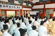 스페이스뉴스 스페이스뉴스 기자 | 경남 밀양시는 24일 향교 대성전에서 밀양향교 주관으로 공자를 비롯한 성현들의 학덕을 기리는 춘계 석전대제를 엄숙히 봉행했다고 밝혔다. 이날 제례에는 초헌관에 안병구 밀양시장, 아헌관에 손기호 옹, 종헌관에 손병돈 옹이 참여해 정성을 다해 예를 올렸다. 참석자들은 전통 제복을 갖춰 입고 분향과 헌작 등 정해진 예법에 따라 제례를 진행하며 의식에 품격을 더했다. 이번 석전대제는 경건한 분위기 속에서 진행됐으며, 선현들의 가르침을 되새기고 전통 윤리 의식을 계승하는 소중한 시간이 됐다. 밀양시 관계자는 “석전대제는 우리의 전통을 계승하고 그 가치를 재조명하는 뜻깊은 의식”이라며, “지역의 전통문화를 이어나가는 김대국 전교님을 비롯한 지역의 유림분들께 깊은 감사의 말씀을 드린다”고 전했다. 한편, 조선시대부터 지역 교육의 산실 역할을 해온 밀양향교는 전통문화 계승에 앞장서고 있다. 특히 올해는 향교 교육 및 체험 프로그램을 새롭게 도입해 시민들에게 전통 예절과 유교 문화를 경험할 수 있는 다양한 기회를 확대 제공할 계획이다. [뉴스출처 : 경