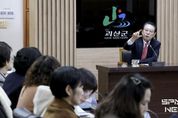 스페이스뉴스 스페이스뉴스 기자 | 충청북도진천교육지원청은 9일, 진천교육지원청 온누리홀에서 윤건영 충청북도교육감과 진천교육지원청 7∼9급 일반직 공무원 20여 명이 참석한 가운데 2026년 주요업무 보고 및 MZ세대 공감 소통 간담회를 개최했다고 밝혔다. 이번 행사는 올해 충북교육의 핵심 가치인 ‘실용’과 ‘포용’을 현장에서 구체적으로 구현하기 위해 마련됐으며, “교육감과 MZ세대, 진솔톡톡(진천교육지원청 솔직 토크토크)”이라는 주제로 진행됐다. 2026년 진천교육지원청 주요업무 보고에 이어 진행된 이번 세션은, 저연차 공무원들이 던지는 가감 없는 질문에 교육감이 즉석에서 답하는 ‘쌍방향 소통’ 방식으로 운영되어 큰 호응을 얻었다. 소통 간담회 현장은 MZ세대 주무관들이 현장에서 느낀 생생한 경험과 아이디어를 쏟아내며 활기찬 토론의 장으로 변모했다. 참석자들은 교육 정책에 대한 질문으로 교육감과의 심리적 거리를 좁히는 한편, 현장의 변화를 이끌 실질적인 개선책을 제안하며 목소리를 높였다. 특히, 충북교육의 6대 핵심 정책을 각자의 일상과 연결해 공유하는 사전 세션을 통해, 정책이 먼 이야기가 아닌 우리 모두의 고민임을 확인