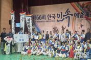 스페이스뉴스 스페이스뉴스 기자 | 강릉농악보존회가 9월 28일 충북 영동군에서 열린 ‘제66회 한국민속예술제’ 청소년부 경연대회에서 강원특별자치도 대표로 출전하여 대상인 대통령상 수상의 영예를 안았다. 이번 경연에는 강릉시 관내 초중고교 학생 44명(초 34명, 중 9명, 고 2명)이 출연했으며, 경연장에 학부모 응원단 및 보존회 회원의 뜨거운 응원으로 예술제에 열기를 더했다. 학생들은 지난 7월부터 약 두 달여 간 무더위와 가뭄이라는 강릉의 어려운 상황 속에서도 굵은 땀방울을 흘리며 꾸준히 연습하며 경연을 준비했고, 그 결과 1위를 차지하여 대통령상 수상이라는 값진 성과를 거두었다. 이날 경연에서는 강릉농악의 대표적인 “농사풀이농악”을 선보였다. 이 농악은 과거 농사과정을 몸짓, 손짓으로 표현한 것이 가장 큰 특징으로 소, 볏짚 등 농사 과정의 다양한 소재들을 직접 몸으로 표현하여 하나의 연극이나 마임을 보는듯한 재미를 느낄 수 있다. 이번 경연은 임영민속연구회의 김남일 박사가 총 연출을 맡고, 이용신 전 서울노원구립예술단장이 고증을 담당해 완성도를 높였다. 한편, 올해 한국민속예술제는 문화체육관