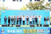 스페이스뉴스 스페이스뉴스 기자 | 파주시는 지난 27일 금릉역 앞 중앙광장에서 열린 ‘제4회 파주 청년희망축제’가 시민들의 뜨거운 호응 속에 성공적으로 마무리됐다고 밝혔다. 올해 축제는 ‘파주청년, 다시 도약하다!(Paju Youth Again, Jump Up!)’을 주제로, 도약하는 청년세대의 열정과 활력을 시민과 함께 나누는 장으로 마련됐다. 이번 축제의 백미는 개막식과 함께 진행된 ‘파주 청년 비전선포식’이었다. 청년정책협의체 공동위원장은 무대에서 ‘청년이 뿌리내리는 도시, 파주’라는 비전을 선포하며, 청년과 지역사회가 함께 나아갈 미래의 방향을 제시했다. 특히 청년들이 직접 낭독한 선언문과 청년친화도시 지정을 위한 기념행사는 파주시의 확고한 의지를 대외적으로 알리는 계기가 됐다. 오후 2시부터 8시까지 진행된 이번 축제는 ▲사전공연 ▲청년 골든벨 ▲청년 가요제 ▲청년공간 특별강좌 ▲프리미엄 수제 맥주 시음 ▲청년창업가 플리마켓 ▲무료 체험공간 ▲대형 ‘파랑’ 포토존 등 다채로운 프로그램으로 꾸려졌다. 가요제 무대에서는 청년들의 끼와 열정이 빛났으며, 청년창업가 판매공간 및 수제 맥주 시음 공