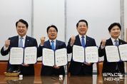 스페이스뉴스 스페이스뉴스 기자 | 광주시·전남도·광주시교육청·전남도교육청이 광주·전남 행정 대통합에 함께 하기로 했다. 강기정 광주광역시장, 김영록 전라남도지사, 이정선 광주시교육감, 김대중 전남도교육감은 14일 오후 국회에서 ‘4자 협의체 간담회’를 갖고, 통합 특별시와 특별시교육청 출범을 목표로 ‘광주.전남 대통합을 위한 공동 합의문’을 발표했다. 이들은 공동 합의문에서 4개 행정기관은 광주.전남 통합 광역지방정부와 광역지방교육청 출범이 역사적 사명임을 공감하며, 상호 존중과 신뢰를 바탕으로 최적의 통합안을 마련하기로 했다. ‘4자 협의체’는 ‘(가칭)광주전남특별시 설치를 위한 특별법’이 2026년 2월 내 국회를 통과할 수 있도록 상호 긴밀히 협력하고, 시.도의회와 함께 공감대 확산을 위해 설명회, 토론회, 간담회 등 공청회를 시·군·구별로 개최한다. 또 행정‧교육행정 통합 이후에도 광주 5개 자치구와 전남 22개 시.군이 스스로의 정체성을 지켜 나가도록 공동 협력하고, 교육이 지역발전의 초석임을 인식하며 광주.전남 행정.교육행정 통합 과정에서 교육자치를 보장하기로 명시했다. 합의