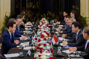 스페이스뉴스 스페이스뉴스 기자 | 싱가포르를 국빈 방문 중인 이재명 대통령은 3월 2일 오전 '로렌스 웡(Lawrence Wong)' 싱가포르 총리와 정상회담을 갖고 양국 간 전략적 동반자 관계 심화 방안과 한반도 및 중동정세 등 주요 국제 현안에 대해 폭넓게 논의했다. 웡 총리는 작년 11월 서울에서의 정상회담 이후 4개월 여만에 싱가포르에서 이 대통령을 맞이하게 되어 기쁘다며 “이번 방문은 전략적 동반자인 한-싱가포르 간 호혜적 실질 협력 사업을 가속화하기 위한 중요한 동력이 될 것”이라며 이 대통령의 방문을 환영했다. 이 대통령은 “친한 친구를 만난 것처럼 반갑다”고 화답했다. 이어 웡 총리가 작년 정상회담 때 수교 50주년 만에 양국 간 전략적 동반자 관계를 체결한 것에 대해 ‘좋은 것은 언제나 기다릴 가치가 있다’고 언급한 것을 상기하고, ‘오랜 신뢰의 동반자’인 양국 관계의 새로운 이정표를 계속 세워 나가자고 말했다. 이 대통령은 대외적으로 안보‧경제 환경이 어려운 가운데 양국이 전략적 안보협력, 경제적 연대, 미래·첨단기술 분야 협력이라는 3대 축을 중심으로 협력을 추진해 나가자고 했다. 두 정상은