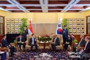 스페이스뉴스 스페이스뉴스 기자 | 우리나라와 싱가포르는 올해로 발효 20년을 맞은 자유무역협정(FTA)에 대한 개선 협상을 개시하기로 합의했으며, 투자 협력도 더 전략적으로 추진해 나가기로 했다. 또 첨단기술과 에너지 안보 분야에 있어서도 협력을 확대해 나가는 한편, 안보 분야 공조 확대와 역내 평화와 안정을 위해 지속 협력해 나가기로 했다. 싱가포르를 국빈 방문 중인 이재명 대통령은 2일(현지시간) 로렌스 웡 총리와 정상회담을 가진 후 공동언론발표를 통해 "작년 수교 50년을 계기로 격상된 '전략적 동반자 관계'를 기반으로 양국 간 협력을 더욱 심화해 나가기로 했다"며 이 같은 성과를 밝혔다. 이 대통령은 "그동안 양국 관계 발전을 견인해 온 경제 분야 연계를 더욱 공고하게 하는 한편으로, 인공지능 등 미래 첨단 분야의 혁신을 가속화하고, 국방·안보 분야 협력 기반을 더욱 강화하기로 했다"고 강조했다. 이어 "이를 위해 양국 정부는 선언문 1건을 채택하고, MOU 5건을 체결했다"며 주요 결과를 구체적으로 공개했다. 이 대통령은 먼저 "역내 자유무역질서를 선도해 온 양국은 경제적