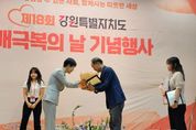 스페이스뉴스 스페이스뉴스 기자 | 2025년 원주시 치매극복의 날 기념식이 지난 17일 동부복합생활지원센터에서 성황리에 개최됐다. 이번 기념식은 원주시에서는 처음으로 개최한 치매극복의 날 공식행사로, 치매 조기 검진을 독려하고 치매에 대한 긍정적인 인식을 함양하는 뜻깊은 자리로 마련됐다. 이날 기념식에서는 치매 극복을 위해 헌신한 보호자와 지역사회 단체에 표창을 수여했다. 또한 경로당 순회프로그램 발표대회 으뜸상을 수상한 장양5리 경로당의 축하공연과 치매 인식 개선 영화공모전 최우수작 ‘그냥 열심히 일만 하면 되는 줄 알았지’ 상영이 이뤄졌다. 원강수 원주시장은 “앞으로도 원주시는 치매 친화적 환경 조성을 통해 가족과 이웃, 지역사회가 함께 힘을 모아 치매를 극복할 수 있는 도시를 만들겠다”라고 말했다. [뉴스출처 : 강원도 원주시]