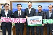 스페이스뉴스 스페이스뉴스 기자 | 거창군은 지난 10일 농협중앙회 거창향우회가 고향사랑기부금 500만 원을 기부했다고 전했다. 이날 기부식에는 이종삼 농협중앙회 울산본부장, 최도영 김해농수산물종합유통센터 지사장, 이희열 농협중앙회 거창군지부장, 신화범 북부농협조합장, 김종두 수승대농협조합장 등이 참석해 고향에 대한 깊은 애정을 담아 기부금을 전달했다. 농협중앙회 거창향우회는 거창 출신으로 농협중앙회와 농협은행에 재직하고 있는 향우들의 모임으로 서울과 경남 지역에 재직하고 있는 30여 명의 회원으로 구성되어 있으며, 고향사랑기부제 시행 첫해 500만 원 기부에 이어 올해도 고향의 발전을 응원하며 기부에 동참했다. 이종삼 농협중앙회 울산본부장은 “고향을 살리고 지역의 농가에도 보탬이 되는 고향사랑기부제에 동참하게 되어 매우 뜻깊게 생각한다”며 “앞으로도 고향의 발전을 위해 지속해서 관심을 가지고 다양한 방식으로 고향사랑을 실천하겠다”고 말했다. 구인모 거창군수는 “고향에 대한 애틋한 마음을 기부로 전해주신 농협중앙회 향우님들께 진심으로 감사드린다”며 “소중한 뜻이 지역발전에 큰 힘이 될 것으로 기대한