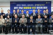 스페이스뉴스 스페이스뉴스 기자 | 전라남도와 광주광역시는 12일 나주 전남연구원에서 제1호 광역통합 지방정부 출범을 향한 민관합동 실무기구인 광주·전남 행정통합 추진협의체 첫 회의를 열어 특별법과 시도민 의견수렴, 공론화 방안 등을 논의했다. 광주·전남 행정통합 추진협의체는 광주·전남 각계 대표 20명으로 구성됐다. 당연직 공동위원장으로 강위원 전남도 경제부지사와 김영문 광주시 경제문화부시장이, 민간 공동위원장으로 전남에선 조보훈 전 산업단지공단 부이사장, 광주에선 정영팔 광주지방시대위원장이 각각 맡기로 했다. 협의체 위원은 두 시·도의회, 시군구의회, 기초자치단체장, 경제·사회단체, 교육·문화계 대표 등 광주·전남에서 각각 8명씩 참여했다. 이날 회의에선 김영록 전남도지사와 강기정 광주시장, 시·도 협의체 위원 등 30여 명이 참석한 가운데 9일 청와대 오찬간담회 결과를 보고하고, 시·도민 의견수렴과 공론화 방안, 행정통합 특별법안 등을 논의했다. 전남도와 광주시는 지난 2일 ‘광주·전남 대부흥’의 새 역사를 열기 위한 대통합 공동선언을 발표하고, 행정 지원을 위한 추진기획단 구성·운