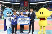 스페이스뉴스 스페이스뉴스 기자 | 이장우 대전시장은 21일 대전충무체육관에서, 6개월간의 V-리그 대장정에 나서는 연고팀 대전 삼성화재 블루팡스의 승리를 기원하는 시구에 참여했다. 1세트 종료 후에는 삼성화재 블루팡스×꿈돌이 굿즈를 공동 브랜딩을 위한 상호협력 협약을 체결하고, 스포츠마케팅을 확장하기로 했다. [뉴스출처 : 대전시]