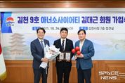 스페이스뉴스 스페이스뉴스 기자 | 김천시는 지난 24일, 김천시청 접견실에서 김대근농약사 김대근 대표의 ‘김천 9호(경북 189호) 아너 소사이어티 신규 회원 가입식’을 개최했다고 밝혔다. ‘아너 소사이어티(Honor Society)’는 사회복지공동모금회가 운영하는 고액 기부자 클럽으로, 1억 원 이상을 일시 또는 5년 이내 분할 기부하는 개인에게 부여되는 명예로운 회원 자격이다. 김대근 대표는 지난 2022년 이후 김천에서 3년 만에 새롭게 탄생한 신규 회원으로, 이번 가입으로 김천시의 아너 소사이어티 회원은 총 9명으로 늘었다. 이날 가입식에는 배낙호 김천시장을 비롯해 전우헌 경북사회복지공동모금회장, 장재호 김천 사랑의열매 나눔봉사단장 등이 참석해 김대근 대표에게 진심 어린 축하와 응원의 메시지를 전했다. 김천 출신의 젊은 기업인 김대근 대표는 평소에도 어려운 이웃에 대한 관심과 애정으로 지속적인 사회공헌 활동에 참여해 왔다. 그는 부친과 함께 ‘김부자종합농약사’를 운영하며 2013년부터 2021년까지 매월 정기 기부에 참여했으며, 최근 새로 문을 연 ‘김대근농약사’로도 그 나눔을