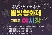 스페이스뉴스 스페이스뉴스 기자 | 홍천군은 10월 15일부터 18일까지 매일 저녁 6시, 홍천중앙시장 옥상 정원에서 가을밤의 낭만이 가득한 ‘별빛영화제 그리고 야시장’을 개최한다고 밝혔다. 이번 행사는 홍천전통시장 활성화를 위해 마련된 문화형 야시장 프로그램으로, 별빛 아래에서 영화와 먹거리를 동시에 즐길 수 있는 특별한 야외 페스티벌이다. ‘별빛영화제 그리고 야시장’에서는 ▲15일 서울의 봄, ▲16일 베테랑 2, ▲17일 소방관, ▲18일 히트맨 2가 상영된다. 매일 저녁 6시부터 6시 40분까지는 프리 공연으로 가수 이진, 홍지나, 그리고 하모니카 동호회 한옥타브, 하모홀릭이 무대에 올라 감미로운 음악으로 영화제의 분위기를 한껏 끌어올린다. 공연이 끝난 뒤에는 6시 40분부터 본격적인 영화 상영이 시작되어, 가을 저녁의 감성과 함께 다채로운 즐거움을 선사한다. 영화 관람과 함께 즐길 수 있는 야시장 먹거리도 풍성하게 준비됐다. 홍천중앙시장 상인회가 직접 운영하는 부스에서는 어묵, 떡볶이, 닭강정, 튀김 등 시장표 간식은 물론, 시원한 음료와 간단한 주류까지 마련되어 관람객들의 오감을 만족시킬