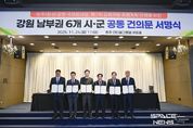 스페이스뉴스 스페이스뉴스 기자 | 강원 남부권 6개 시군(원주·횡성·영월·평창·정선·태백)은 24일 오전 11시, 호텔인터불고 원주에서 국토교통부의 ‘제7차 공항개발 종합계획’에 ‘원주(횡성)공항의 국제화 사업 반영’을 요청하는 공동 건의문을 채택했다. 이날 서명식에는 원강수 원주시장, 김명기 횡성군수, 이상호 태백시장, 최명서 영월군수, 심재국 평창군수, 최승준 정선군수 등 강원 남부권 6개 시군의 시장·군수가 모두 참석해 원주(횡성)공항 국제화 추진에 뜻을 모았다. 이번 공동 건의문 채택은 원주(횡성)공항 국제화가 침체된 강원 남부권 경제를 되살리고 공동 번영을 이끌 핵심 인프라라는 인식을 공유하고, 이에 대한 정부의 적극적인 지원과 조치를 요청하기 위해 마련됐다. 건의문의 주요 내용은 ①강원 남부권의 절실한 지역 현안과 새로운 돌파구 필요성 ②원주(횡성)공항의 경제적 파급 효과 ③국토교통부의 선제적 결단 촉구 등이며, 강원특별자치도를 통해 국토교통부에 전달될 예정이다. 원주(횡성)공항의 시설 개선으로 국제선 유치 여건이 갖춰지면, 강원 남부권 지역 경제 활성화는 물론, 수도권과 비수도권 간