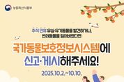 스페이스뉴스 스페이스뉴스 기자 | 추석 연휴 유실·유기동물을 발견하거나, 반려동물을 잃어버렸다면 국가동물보호정보시스템에 신고·게시해주세요! ■ 추석 연휴 유실·유기동물 구조 통합 신고시스템 운영으로 신속한 온라인 신고·접수 가능 · 기간: 2025.10.2.(목)~10.10.(금) · 신고 게시: 국가동물보호정보시스템 누리집 팝업창 ■ 유실·유기동물 온라인 신고·접수 방법 ① 유실·유기동물을 발견한 경우 국가동물보호 정보시스템 '동물발견' 배너 클릭 → 발견장소, 사진, 개체 특징 등 제보 등록 → 해당 지자체 보호센터 정보제공 → 지자체 동물보호센터 신속 대응 ② 반려동물을 분실한 경우 국가동물보호 정보시스템 '동물분실' 배너 클릭 → 반려동물 분실장소, 일시, 사진 등 정보 등록 → 시민 간 발견 정보 공유(댓글 창 활성화) → 필요시 분실신고 병행(등록동물 정보 변경) 유실·유기동물 구조 통합신고로 보호자를 빠르게 찾아드리겠습니다 [뉴스출처 : 농림축산식품부]