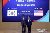 스페이스뉴스 스페이스뉴스 기자 | 아산시는 24일 글로벌 첨단 유리소재 선도기업인 코닝정밀소재㈜를 방문해 임직원들과 간담회를 갖고 지역경제 활성화와 상생협력 방안을 논의했다고 밝혔다. 이번 방문은 코닝정밀소재의 생산 현장을 직접 둘러보고, 최근 디스플레이 산업의 기술 변화와 기업 애로사항을 청취하며 지역 산업 생태계와 연계한 협력 방안 및 지역경제 회복 방향을 모색하기 위해 마련됐다. 간담회에는 오세현 시장을 비롯해 이재성 기획경제국장 등 시 관계자와 반 홀(Vaughn M. Hall Jr.) 코닝정밀소재 대표이사와 임원진 등 20여 명이 참석했다. 양측은 △코닝의 첨단 건축용 유리제품 공공건축물 적용 △아산시 관내 기업 이용 및 청년 현장견학 프로그램 운영 △아산페이 더블혜택 이벤트 홍보 △지역 농산물 이용 등 다양한 상생 협력 과제에 대해 의견을 교환했다. 이 자리에서 오 시장은 “디스플레이 산업은 초고해상도, 대형화, 폴더블 등 기술 패러다임이 빠르게 전환되고 있으며, 그 중심에 코닝의 초박막‧고기능성 유리 기술이 있다”고 평가했다. 특히 “코닝정밀소재는 아산의 미래산업을 함께 설