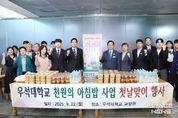 스페이스뉴스 스페이스뉴스 기자 | 완주군이 우석대학교 교양관에서 ‘천 원의 아침밥’ 사업 하반기 첫날 맞이 행사를 개최하고 본격적인 사업 추진에 나섰다. 22일 완주군은 우석대학교 교양관에서 천 원의 아침밥 사업 하반기 첫날 맞이 행사를 가졌다. 이날 행사에는 유희태 완주군수와 박노준 우석대 총장, 김정은 사회적협동조합 양지뜰 대표 등이 참여해 바쁜 학업과 생활로 아침식사를 거르는 대학생들에게 로컬푸드 식재료를 활용한 아침식사를 직접 전달하고, 격려의 메시지를 전달했다. 이번 행사는 하반기 사업의 성공적인 추진을 다짐하고, 학생들의 다양한 의견 청취와 함께 사업의 내실화를 기하기 위해 마련됐다. 학생들에게 제공될 메뉴는 상반기 추진된 만족도 조사를 반영해 지역산 쌀을 활용한 덮밥을 다양화하고, 과일 등 영양가가 높고 건강한 간편식 식단으로 구성한다. 특히, 직매장을 운영 중인 완주로컬푸드 협동조합에서는 판매되지 않은 신선한 농산물을 기부하고자 하는 농가를 적극 발굴 연계해, 사업에 힘을 보탤 계획이다. 완주군은 상반기 동안 진행된 사업을 도 먹거리통합지원센터와 함께 지속적으