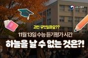 스페이스뉴스 스페이스뉴스 기자 | 하늘을 날 수 없는 것들은? ■ 전면 통제대상 · 모든 항공기 이륙 금지 (비행 중 항공기 → 3km 이상 상공에서 대기) · 헬기 · 경량항공기 그리고 초경량 비행장치(드론 포함) 모두 STOP! * 예외: 비상·긴급 항공기 영어 듣기평가에 방해가 되는 '항공기소음 최소화' ■ 언제 통제되나요? 11월 13일(목) 13:05~13:40(총 35분) ※ 듣기평가 전·후 5분 포함 수험생에게 조용한 하늘을! 국민 여러분의 협조를 부탁드립니다. [뉴스출처 : 국토교통부]