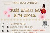 스페이스뉴스 스페이스뉴스 기자 | 세종특별자치시 보건소가 1일부터 31일까지 한글날을 맞아 ‘10월 한글의 달 함께 걸어요’ 걷기 도전 행사를 운영한다. 이번 행사는 오는 9∼11일 개최하는 세종한글축제와 한글날을 기념하고, 시민들의 건강을 증진하기 위해 마련됐다. 걷기 도전 행사에 참여하려면 세종호수공원 둘레길 50% 이상을 1회 이상 걷고, 10월 중 총 10만 보를 달성하면 된다. 시 보건소는 조건을 충족한 참여자 중 300명을 추첨, 지역화폐 여민전 3,000원을 지급한다. 참여 방법은 본인 명의 휴대전화에 ‘워크온’ 앱을 설치한 뒤 ‘세종시공식커뮤니티’에 가입하고, ‘10월 한글의 달 함께 걸어요’ 걷기 도전을 신청하면 된다. 김수영 보건소장은 “시민들이 걷기 도전을 통해 건강한 생활습관을 실천하고, 한글날과 축제의 의미도 되새기는 계기가 되길 바란다”고 말했다. [뉴스출처 : 세종시]