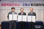 스페이스뉴스 스페이스뉴스 기자 | 세종특별자치시가 3일 시청 세종실에서 한국콜마㈜, ㈜대인프린테크와 관내 산업단지 내 공장 신설 및 전면 이전을 위한 1,858억 원 규모의 투자협약(MOU)을 체결했다. 이날 협약식에는 최민호 시장과 최현규 한국콜마㈜ 대표, 김진헌 ㈜대인프린테크 대표 등이 참석한 가운데 투자사업의 원활한 추진과 지역민 우선 채용 등 사회적 책임 이행을 약속했다. 지역을 대표하는 화장품 제조기업인 한국콜마㈜는 중국 베이징공장을 철수하고 세종시 전의일반산업단지 내 공장 신설을 추진하기로 하면서 올해 1호 국내복귀기업(유턴기업)으로 선정된 바 있다. 한국콜마㈜는 오는 2028년까지 전의산단 내 약 9,851㎡(2,980평) 부지에 1,733억 원을 투자해 기초화장품 제조공장을 신설할 예정이다. 국가고시 시험지 인쇄 전문기업인 ㈜대인프린테크는 정부부처와의 인접성을 고려, 총 125억 원을 투자해 올해 안에 전동면 벤처밸리산단으로 전면 이전을 추진한다. 두 기업의 총 투자금액이 1,858억 원에 달하고 431명의 신규 고용 창출이 예상되는 만큼 지역 경제 활성화는 물론 세종시