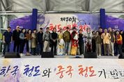 스페이스뉴스 스페이스뉴스 기자 | 청도군이 주최하고 (사)한국예총 청도지회(회장 손만식)가 주관한 청도예술제 특별기획행사‘한중 문화예술 교류전’이 10월 17일부터 19일까지 3일간 청도반시축제장 실내테니스장에서 성황리에 열렸다. 이번 행사는 한국 청도군과 중국 칭다오 예술인들이 함께한 문화예술 교류의 장으로, 시각예술 전시와 공연, 양국 특산물 홍보 등 다채로운 프로그램이 진행됐다. 전시 부문에서는 (사)한국미술협회·사진작가협회·민화협회 청도지부 회원들과 중국 봉황미술관 작가들의 회화, 서예, 사진 등 100여 점의 작품이 선보여 관람객들의 발길을 사로잡았다. 공연 부문에서는 양국 예술인들이 음악, 국악, 무용, 연극 등 다양한 무대를 펼쳤으며, 특히 칭다오 공연예술단의 전통 공연과 한국 예술인들의 무대가 뜨거운 호응을 얻었다. 행사장에는 청도 감말랭이와 칭다오 맥주를 시음·시식할 수 있는 부스도 운영돼, 예술뿐 아니라 양국의 특산품을 함께 즐길 수 있는 체험의 장으로 큰 인기를 끌었다. 또한 중국 봉황미술관 조길간(趙吉干) 대표를 비롯한 예술인 13명이 청도를 방문해 김하수 군수와