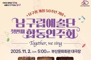 스페이스뉴스 스페이스뉴스 기자 | 부산 남구는 오는 11월 2일 오후 17시 부산문화회관 대극장에서‘남구립예술단 합동 연주회 Together, We Sing’을 개최한다. 남구립예술단은 ▲소년소녀합창단(지휘 김주곤) ▲오륙도여성합창단(지휘 곽기웅) ▲욜드합창단(지휘 고영호)으로 구성되어 있으며, 남구를 대표하는 문화사절단으로 활발히 활동하고 있다. 이번 연주회는 남구청 개청 50주년을 기념하여 세 합창단이 처음으로 함께하는 합동 연주회라는 점에서 특별한 의미를 지닌다, 각 합창단의 개성과 감성을 담은 다채로운 무대를 통해 관객에게 풍성한 음악적 경험을 선사할 것으로 기대된다. 소년소녀합창단은 맑고 순수한 목소리로 음악극‘푸른 하늘 은하수’를 선보이고, 오륙도여성합창단은 ‘그리움 그리고 사랑’이라는 테마로 세대를 이어주는 따뜻한 감성의 하모니를 들려주며, 욜드합창단은 인생의 깊이와 여운이 느껴지는 ‘행복한 인생’이라는 감동의 무대를 마련했다. 특히 이번 공연의 하이라이트는 세 합창단이 함께 꾸미는 합동무대다. 서로 다른 세대의 목소리가 한 무대에서 하나의 선율로 어우러지며, 노래를 통해 마음을 나누