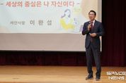 스페이스뉴스 스페이스뉴스 기자 | 이완섭 서산시장이 20일 해미중학교 학생 180여 명을 대상으로 진로 특강을 진행했다. 이번 특강은 ‘세상의 중심은 나 자신이다’를 주제로 학생들에게 올바른 가치관 형성과 진로 선택에 도움이 될 조언을 전하고자 마련됐다. 이 시장은 “작은 눈덩이가 굴러가 큰 눈사람이 되듯, 작은 꿈이라도 품고 키워가는 과정이 무엇보다 중요하다”라며 “학생들에게 자기 자신을 믿고 가능성에 한계를 두지 말아야 한다”라고 말했다. 또한, 청소년이 빠지기 쉬운 ‘습관의 덫’에서 벗어나기 위해 일상 속 작은 변화를 만드는 행동의 실천이 필요하다고 강조했다. 이어, 긍정적인 사고와 적극적인 행동과 함께 어떤 어려움에서도 포기하지 않고 끝까지 도전하는 자세를 당부했다. 특히, 사회에서 중요하게 여겨질 자세로 ‘5S5품’을 소개했다. 5S는 친절(Smile), 간편(Simple), 유연(soft), 신속(Speed), 깔끔(Smart)을, 5품은 두품(창의), 입품(칭찬), 심품(감성), 손품(소통), 발품(현장)을 뜻한다. 특강이 마무리된 후에는 학생들과
