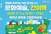 스페이스뉴스 스페이스뉴스 기자 | (재)예천문화관광재단은 11월 1일 예천군 호명읍 산합문화공원(걷고싶은 거리)에서 ‘문화예술, 간이역’ 10월 프로그램을 개최한다. ‘문화예술, 간이역’은 문화체육관광부와 지역문화진흥원이 주관하고, (재)예천문화관광재단이 주최하는 ‘2025 문화가 있는 날 구석구석 문화배달’ 사업의 일환으로, 일상 속에서 문화를 자연스럽게 접하고 다양한 문화 향유 기회를 누릴 수 있도록 기획된 지역 밀착형 프로그램이다. 이번 프로그램은 9월에 이어 두 번째로 진행되는 야외형 문화행사로, 단풍으로 물드는 가을 정취 속에서 다채로운 공연과 체험이 어우러진 프로그램으로 구성됐다. 주요 프로그램으로는 싱어송라이터 ‘어치브’와 ‘퓨전국악 이어랑’이 함께하는 청춘콘서트, 가족 단위 관객을 위한 마술과 버블쇼, 환경문제 인식을 높이는 체험형 콘텐츠 ‘리사이클 정류장’, 감성을 자극하는 독서 프로그램 ‘북적북적 북크닉’이 준비된다. 특히 이번 북크닉에서는 예천 출신의 그림작가 송태고 작가와 함께하는 북 토크 콘서트와 클레이 체험 프로그램도 함께 진행되어 지역 예술가와의 교류를 통해 문화적 의미